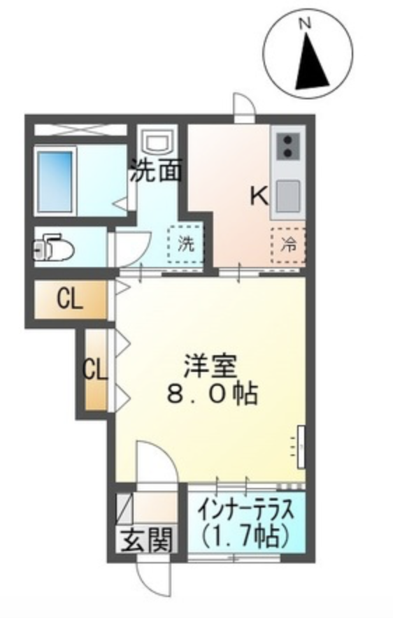 | 間取り | 1K | 建物面積 |