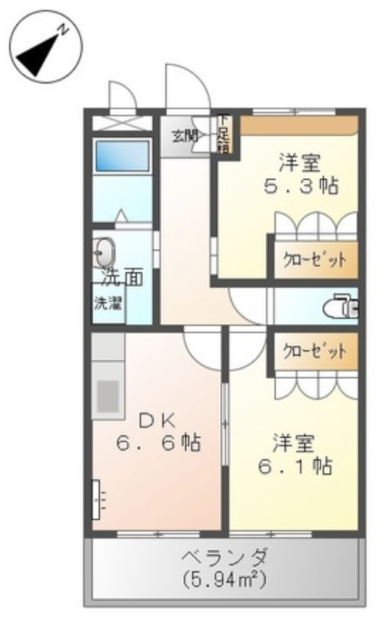 | 間取り | 2DK | 建物面積 |
